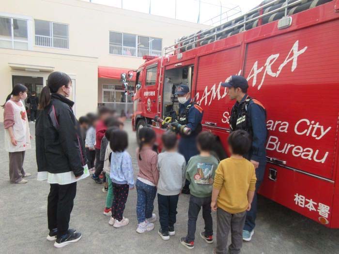 消防車の見学と4・5歳児クラスは起震車の体験もしました。