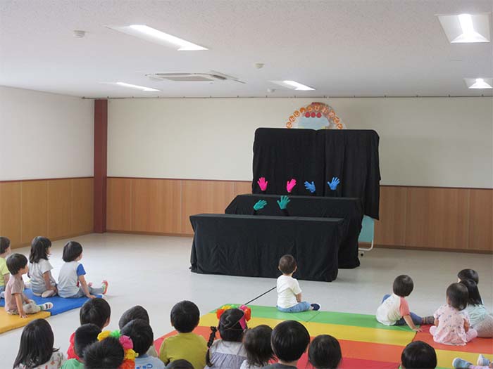 7月はハンドダンスのプレゼントでした。音楽に合わせて自然と体を動かすお友だちもいました♪