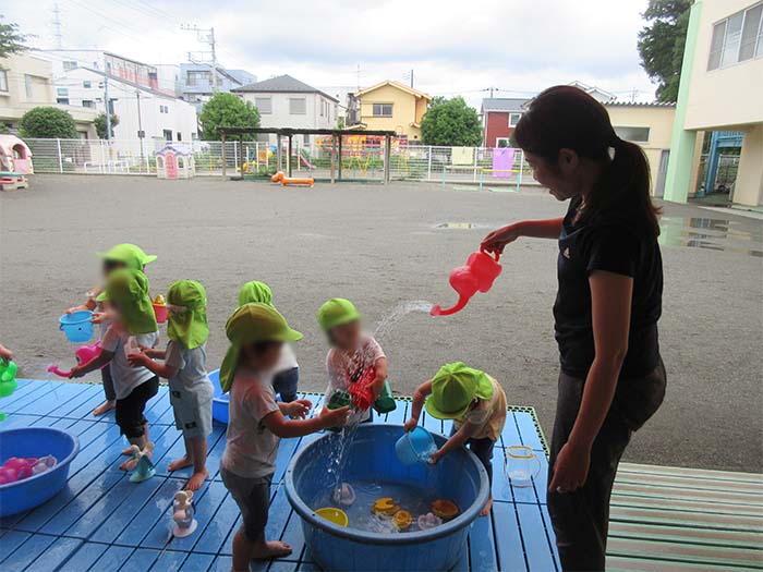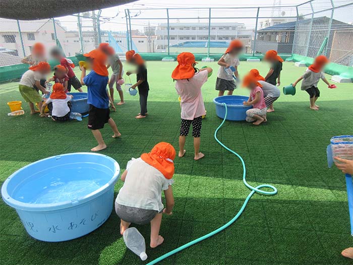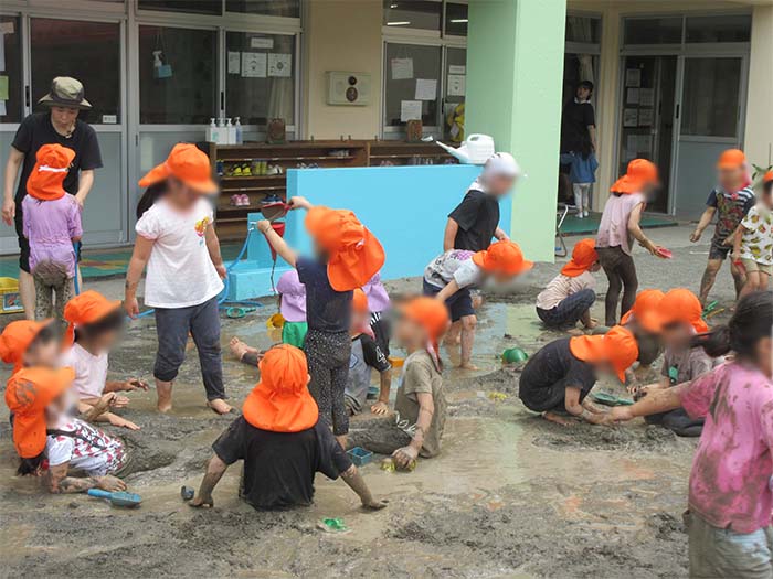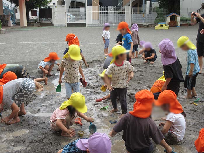 幼児クラスは園庭でおもいっきり泥遊びを楽しみました!