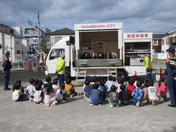 消防車の見学と4・5歳児クラスは起震車の体験もしました。
